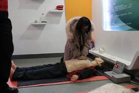 之后,培训员对同学们进行心肺复苏教学,传授了路遇心脏骤停行人的处理方法;针对其他院校宿舍楼起火员工为逃脱跳楼身亡事件,同学们学习了被困高楼逃生时,利用床单捆绑绳结逃脱的方法;每位同学都进行了灭火器使用训练,掌握了灭火器的使用方法。