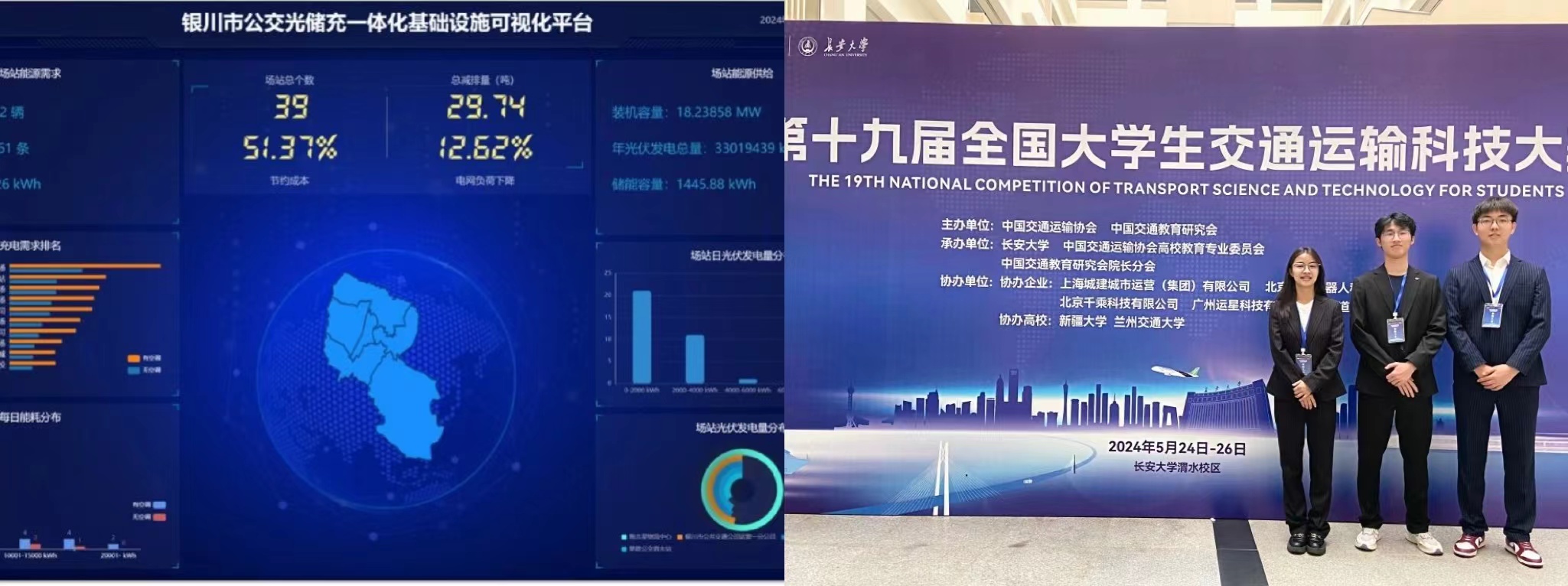 本项目响应国家“碳达峰,碳中和”的号召,为缓解交通运输系统高能耗、高碳排的问题,将分布式光伏发电系统与既有城市公交充电基础设施相结合,构建一种基于光伏、储能与充电(简称为光储充)一体化公交充电基础设施的公交运营新模式,进行光储充一体化基础设施的优化与仿真。项目以多源异构真实数据集为基础开发可视化平台,并联合北京最大电动公交充电基础设施运营平台隆瑞三优新能源汽车科技有限公司进行应用测试。项目已在交通领域权威期刊TRE等发表学术论文4篇,公开发明专利1项,成果显著。